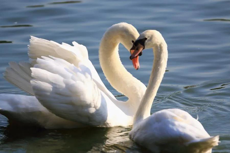 湖面中心,高雅天鵝們
